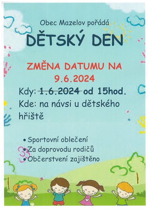 srdečně Vás zveme na Den dětí v Mazelově .